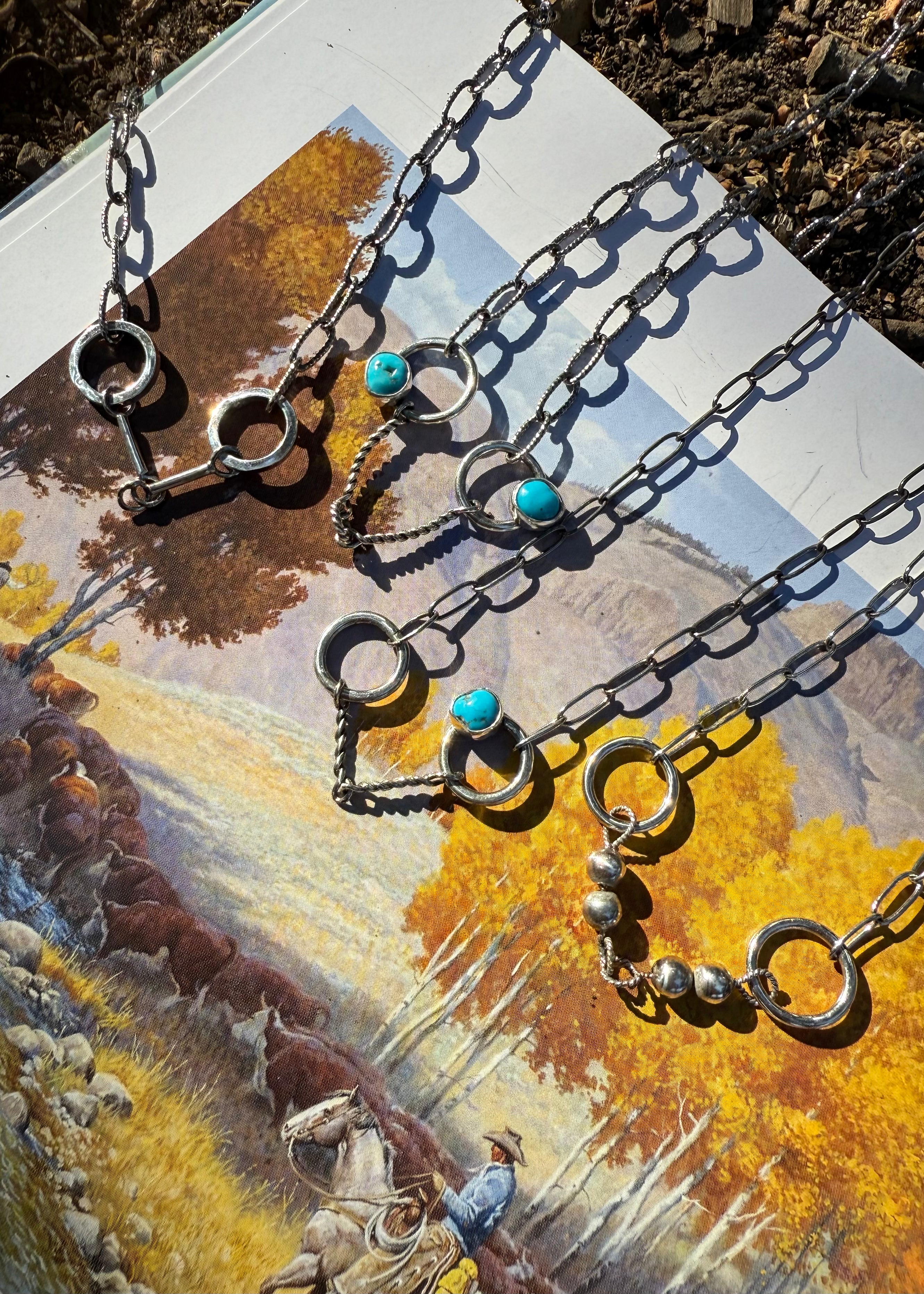 Hand-forged in solid sterling silver, this necklace features a sleek smooth snaffle bit design — a subtle nod to Western... Read more