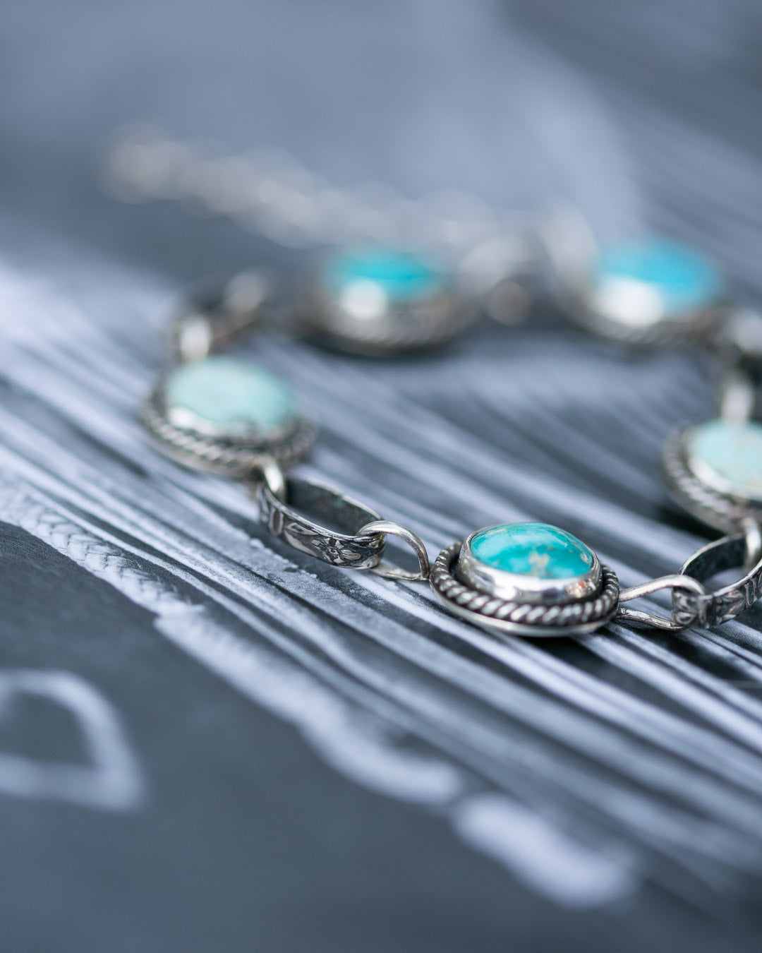 Authentic Campitos, Dry Creek and Sonoran turquoise Genuine 925 sterling silver Handmade floral detailed links Adjustable - 9" at its...